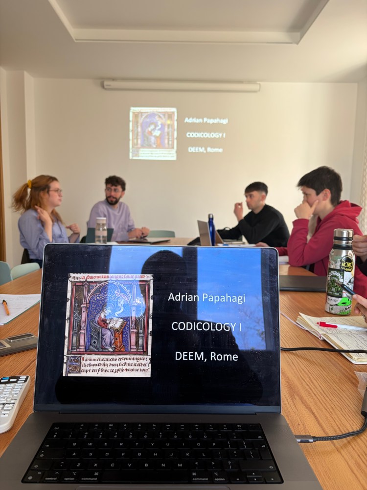 On 23-27 March, CODEX director, Adrian Papahagi, taught a codicology course in Rome. The course is a part of the European Diploma of Mediaeval Studies (DEEM) programme, offered since 1991 by the Fédération Internationale des Instituts d’Études Médiévales (FIDEM), of which CODEX is a member. The theoretical part of the course was taught at the Norwegian Institute in Roma, affiliated to the University of Oslo, and the practical course took place at the Biblioteca Angelica, where students worked with manuscripts copied between the ninth and the fifteenth century. The course was attended by MA and PhD students from Brazil, Italy and Spain.